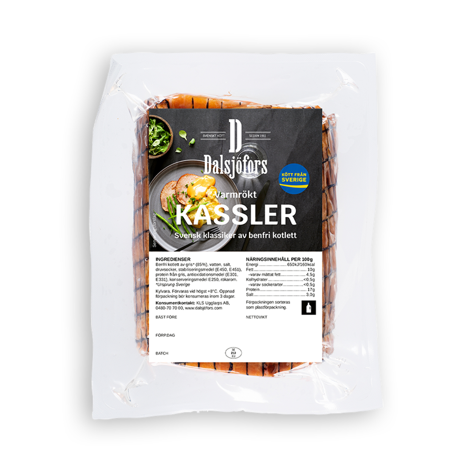 Vakuumpack x 600 gDalsjöfors kassler är den ultimata svenska klassikern, varmrökt till perfektion med en välbalanserad sälta som gör den lika god att njuta av direkt eller inkludera i dina favoriträtter. Oavsett om du har den i en krämig gratäng eller förhöjer smaken i en fräsch pastasallad, är denna smakrika och enkelt tillagade familjefavorit din snabba lösning för vardagspusslet! Varje tugga är resultatet av omsorgsfullt hantverk med kött från svenska gårdar.