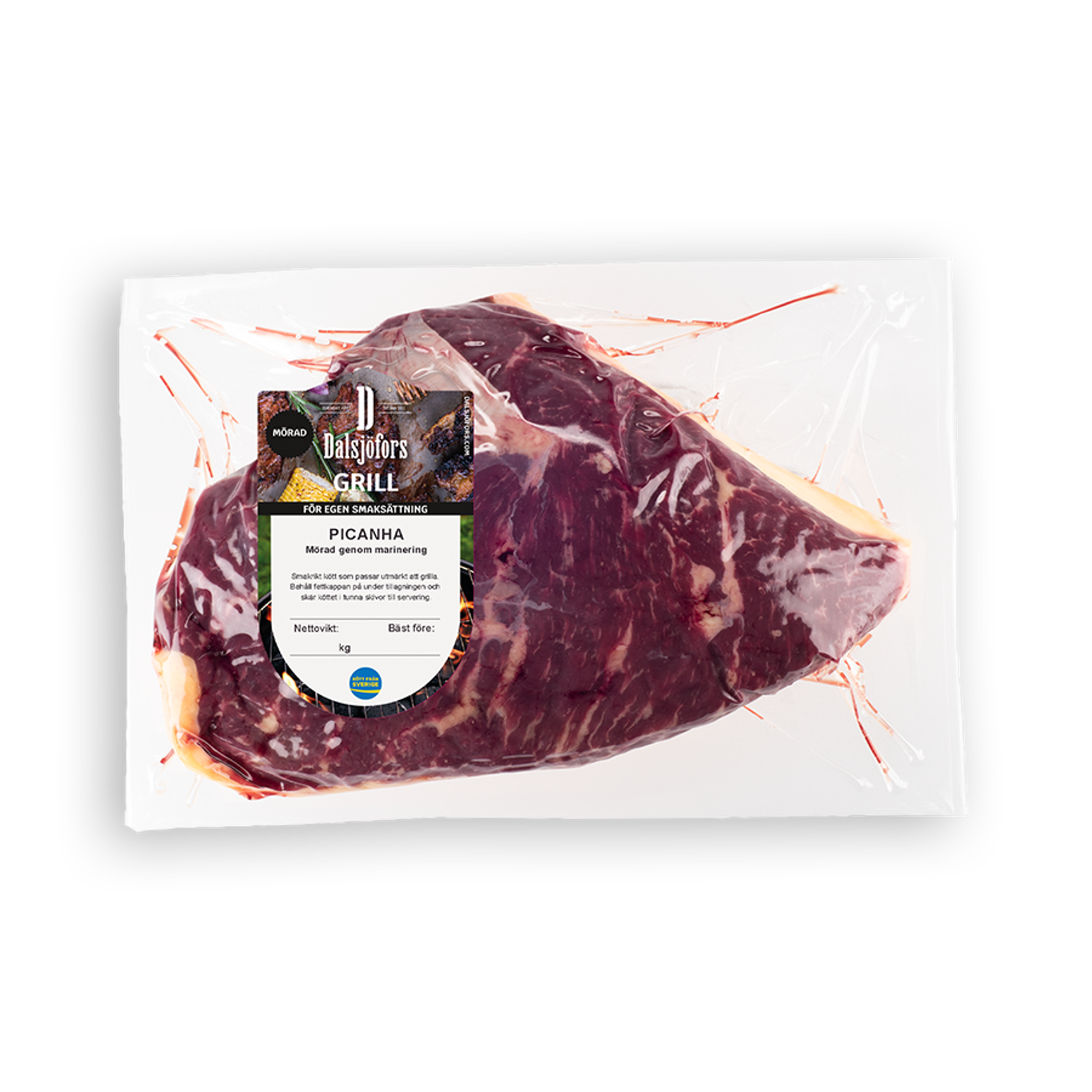 Grill x 850 gDalsjöfors picanha är mörningsmarinerad för extra saftighet. Ett smakrikt kött som passar utmärkt att grilla! Krydda efter smak och grilla några minuter på varje sida. Behåll fettkappan på under tillagningen, låt köttet vila en stund innan det skärs i tunna skivor till servering. Servera i tortillabröd med vitlökssås, lime och picklad rödlök för en härlig twist på fredagstacosen. Dalsjöfors, alltid med kött från utvalda svenska gårdar.