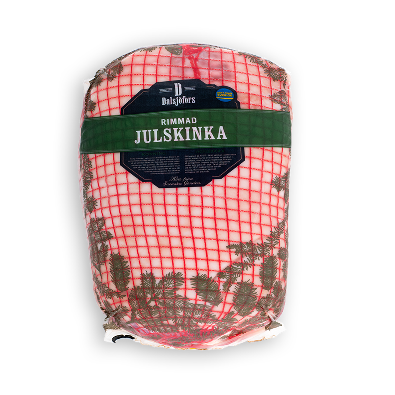 Julskinka x 1900 gDalsjöfors erbjuder dig en julskinka med kött från utvalda svenska gårdar. Vår julskinka är en god, saftig och smakrik skinka du kan njuta av. Kom i julstämning med vår färska och rimmade julskinka med svål! Koka eller baka i ugn till en innertemperatur på 70°C. Avlägsna nät och svål, pensla skinkan med uppvispad äggula och senap, täck med ströbröd och griljera sedan i ugnen på 225°C tills den fått fin färg.